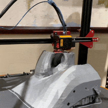 The nozzle moves around according to the design of the 3D model, depositing the melted plastic in the shape of each layer.